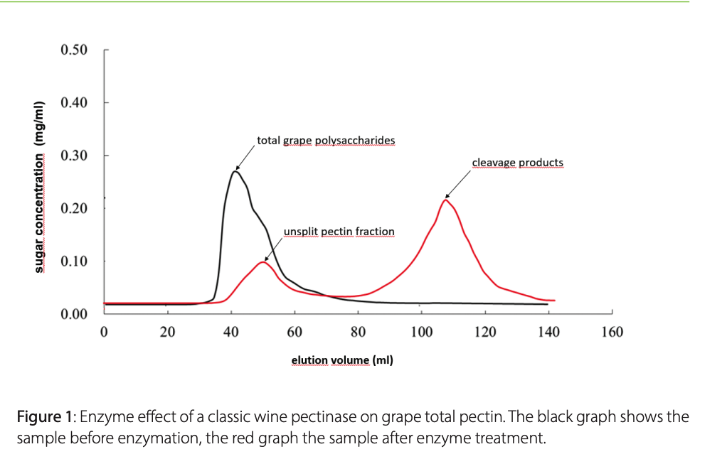 Not only do hybrid varieties usually have a tougher skin, they also have a more complex pectin structure that is comparable with familiar American grapes. This tough, complex pectin structure is due to the increased presence of what are known as “hairy regions”. In this case the D-galacturonic acid chain of which pectin is composed also has side chains of unfermentable sugars, such as araban and rhamnogalacturonan. Conventional pectinases cannot degrade these, which impedes process stages such as pressing, clarification and filtration. It is therefore necessary to use an enzyme with corresponding side activity to break down the mash and for subsequent clarification. Without such an enzyme you do not have the right key to unlock the necessary process stages. Enzyme formulations such as Trenolin® FastFlow DF, which due to its side activities has been used successfully for years with tough-skinned, difficult grape varieties such as Silvaner, can give full rein to its strengths here, for breaking down the mash, for pectin degradation, and to facilitate clarification.