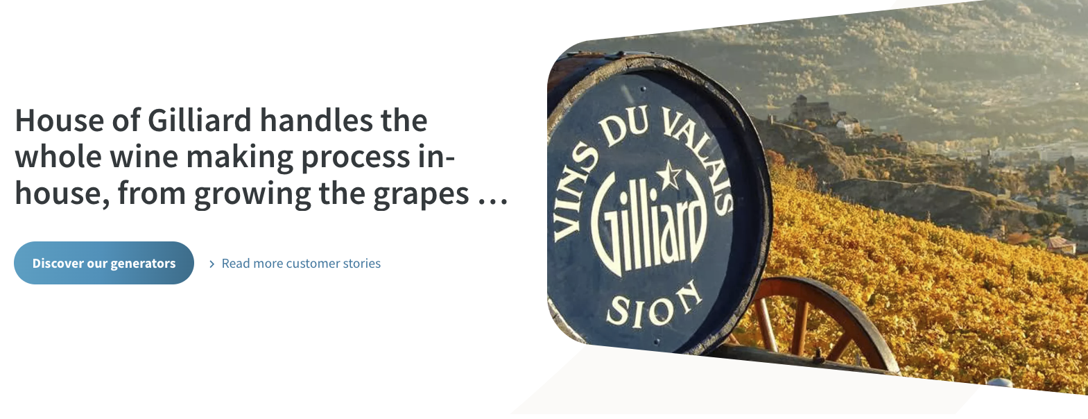 The tradition of the House of Gilliard in Switzerland goes back to the 19th Century, with the today famous Dôle des Monts wine. The winery handles the whole wine making process in-house, from growing the grapes to bottling. Achieving wine of the highest quality requires a command of the whole production process. Gilliard’s wine masters rely on Atlas Copco to help them with this task.