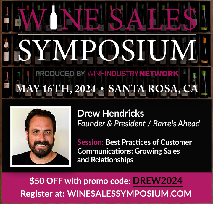 Drew Hendricks, Founder & President of Barrels Ahead, will be speaking at the Wine Sales Symposium on May 16th in Santa Rosa, CA, on a panel talking about Best Practices of Customer Communications: Growing Sales and Relationships.