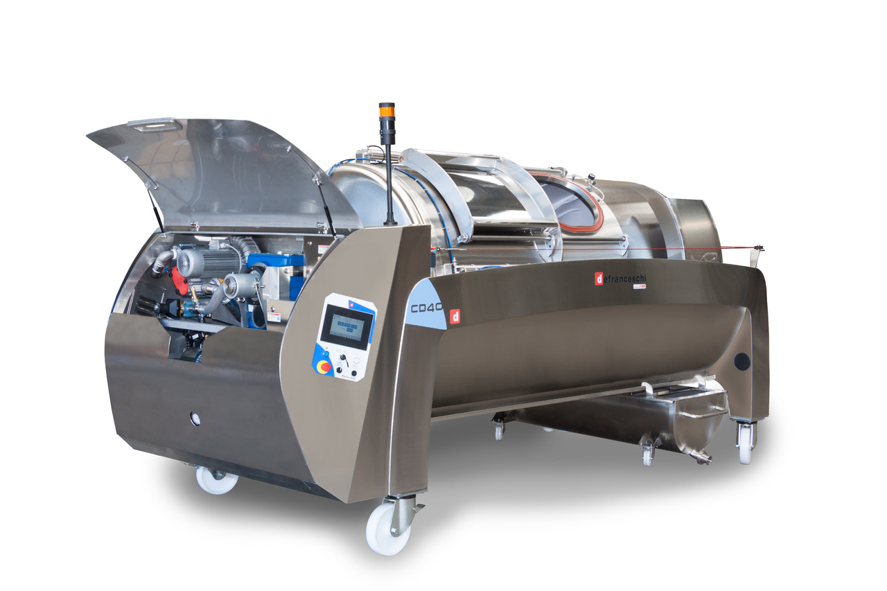 Visit Defranceschi in booth #604 at WINExpo to get a look at the JP22 open drum wine press with an easy dump juice vat. No more bins or shovels required for getting rid of skins and seeds after pressing. Simply empty the press into the vat, pick it up with a forklift and pull the lever to dump. The vat resets itself when you lower it to the ground and it is ready to go again after a quick rinse. The Defranceschi booth will also feature examples of our unique design tanks and winery design projects.