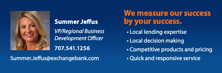 Call or email to schedule an appointment with Wine Industry Specialist Summer Jeffus at 707.524.1256 / Summer.Jeffus@exchangebank.com.