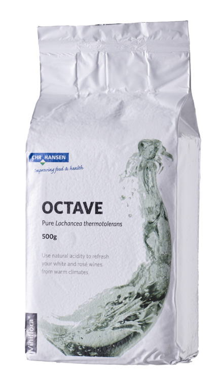 A pure strain of Lachancea thermotolerans (formerly Klyveromyces thermotolerans) selected for its capacity to increase the acidity in white and rosé wines and adding to the flavor complexity with stone fruits notes. As a consequence of the production of lactic acid from sugar, the final alcohol content in these wines can be reduced. Octave can be used at several stages of the process as a pre-fermentation product (on harvested grapes, on crushed grapes, in the must).