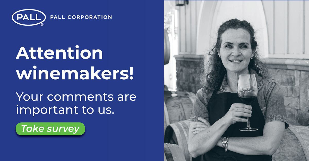 Attention all winemakers! As a wine industry professional, your experience outside filtration is also very important to us. Please take a few minutes to complete the survey linked below and share your comments on how and where you currently test for contamination in your winery. We will use this information to improve Pall's products so that we can better serve you in the future.