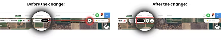 As part of this change, the component list icon was moved from the upper right corner to a more accessible location next to the Hydraulic toggle, alongside the new diagram icon.