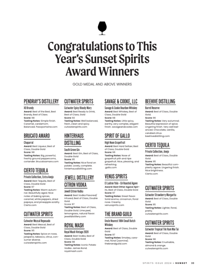 Winning producers will be featured in the Spring release of a Spirits Special non-print, digital edition with supporting microsite. Promotions for Spirits Award Special Issue will be placed in sunset.com, Sunset eNewsletters and Sunset social sites. The edition will be promoted and available for 12 months or until the 2025 Spirit Awards winners are announced.