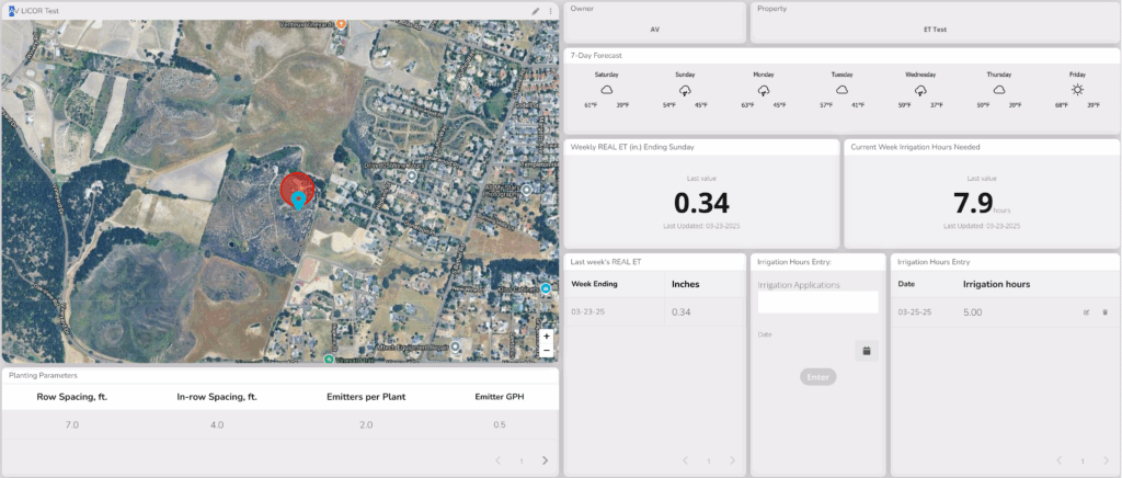 Last year, overjoyed with this new technology, we entered into a reseller agreement with Li-COR and purchased some units to get more familiar with and to do some design for the best data logging and telemetry solutions. We’ve made substantial progress and have also developed an app to track ET and to help growers make determinations of irrigation from the information (Fig. 3).