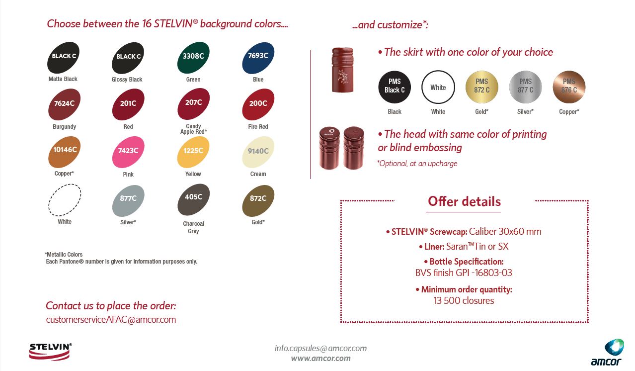 Amcor Capsules releases new offer: COLOURSPRINT Signature by STELVIN®