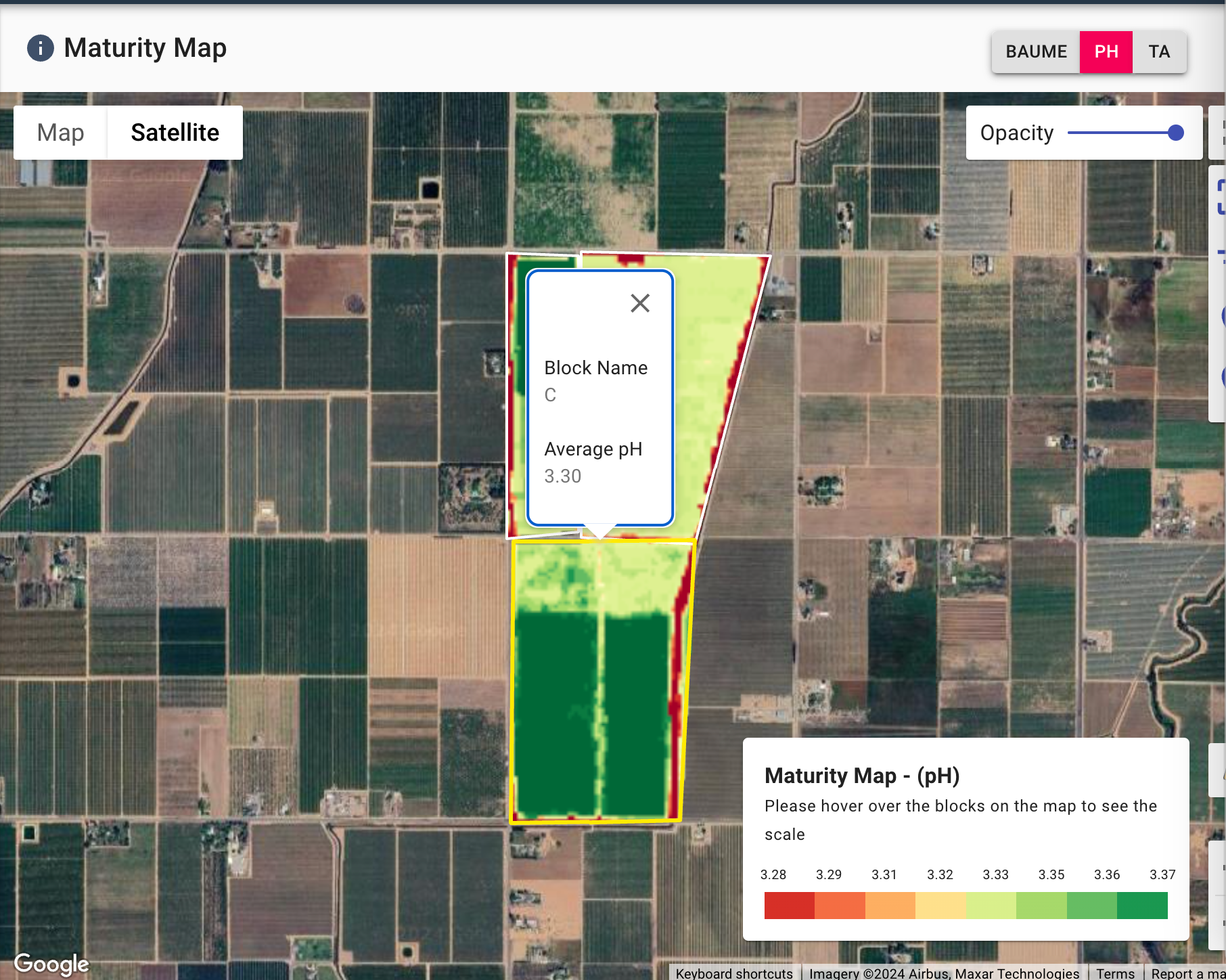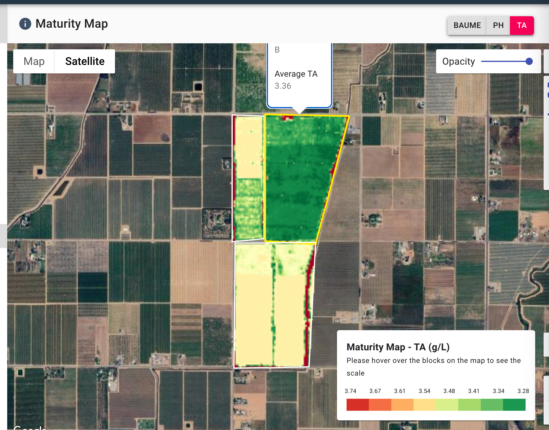 Reach out if you're like to monitor pH and TA (along with our Brix maps and harvest date features) in your vineyards for the current season.