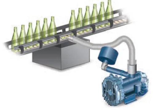 A manufacturer of wine bottles needed to blow broken glass off production lines. Homemade air nozzles fabricated from crimped stainless steel tubing were being used. The nozzles were able to remove the glass from the conveyor lines but they were extremely expensive to operate because they consumed a large volume of compressed air.