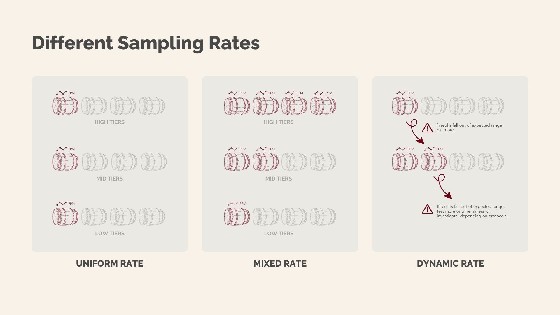 The rule of thumb is to follow the wine value — sample more in higher tiers with individual barrel tracking if possible. You can read more about some sampling structures based on wine’s value.