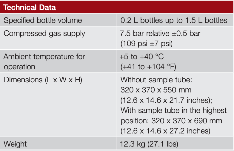 The SFD Filling Device is not just for sparkling wine—it can also be used for still wine sampling. When analyzing wine without carbonation, simply remove the cork and adjust the pressure for an equally effective sample transfer.