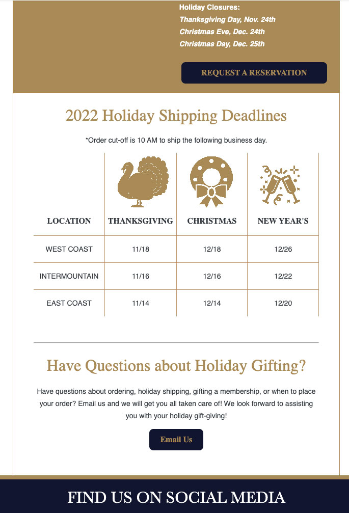 - Late November: Gift ideas, wine club upgrades, and “beat the rush” offers.