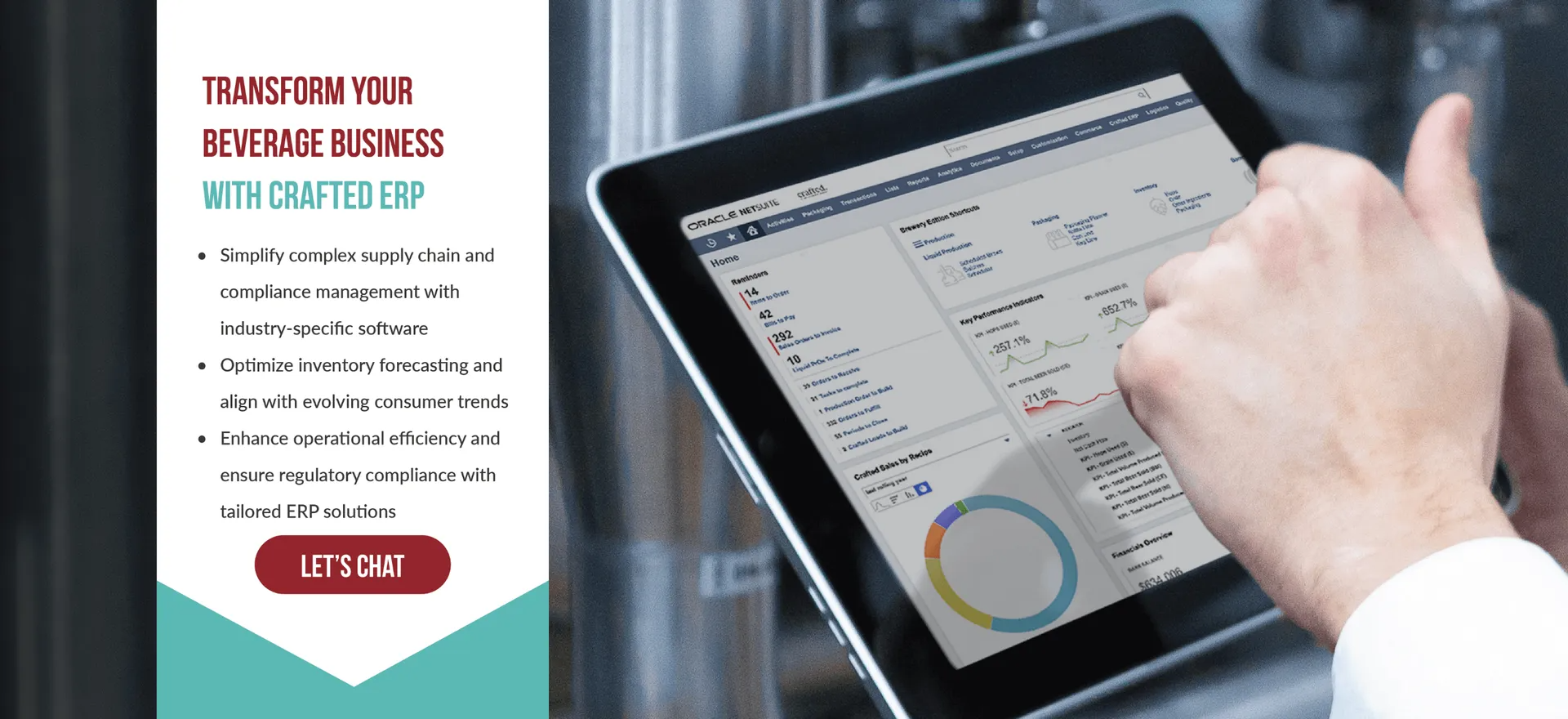 These powerful platforms cover both backend processes—like crop management and wine production—and frontend processes such as sales, accounting and customer relationship management. They integrate seamlessly with existing business systems to provide you with a well-rounded solution to enhance efficiency at every stage.