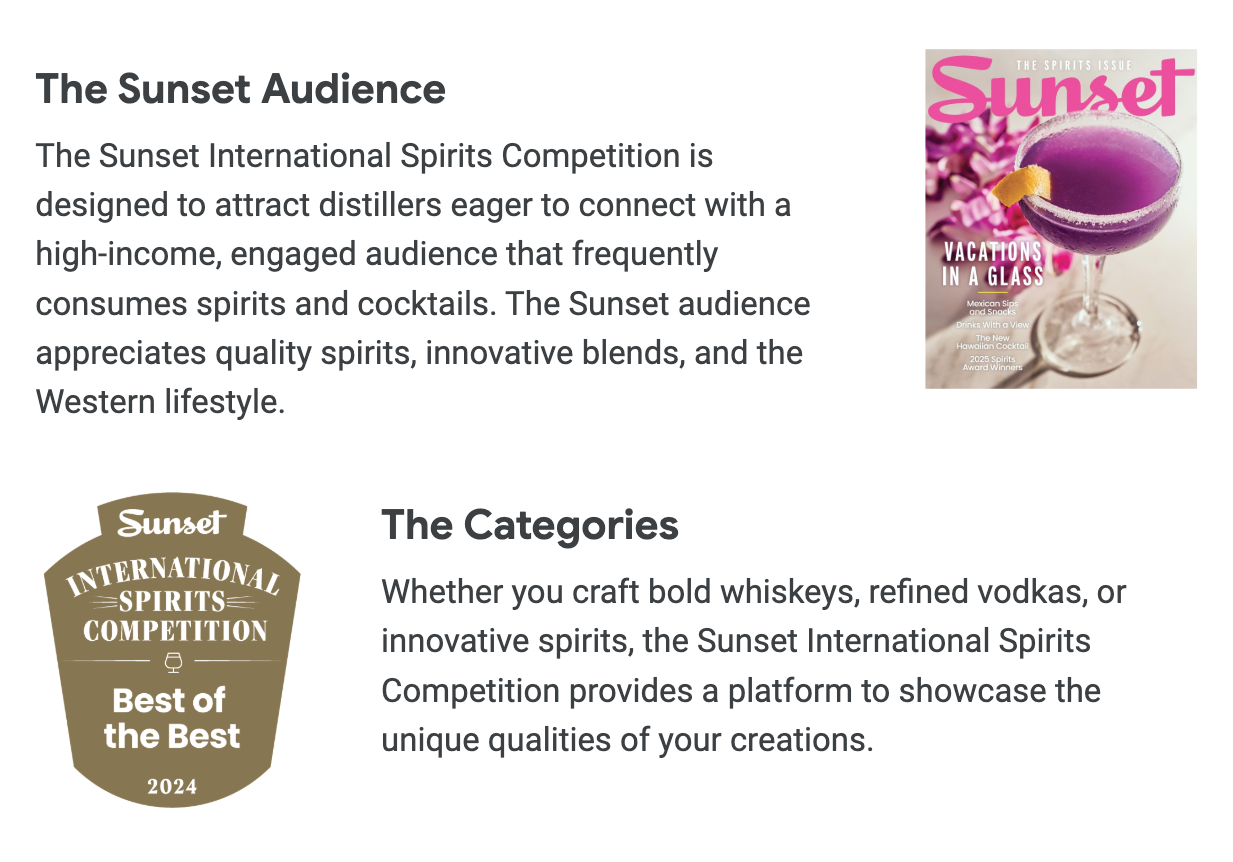 Final Week to Compete in the Sunset International Spirits Competition