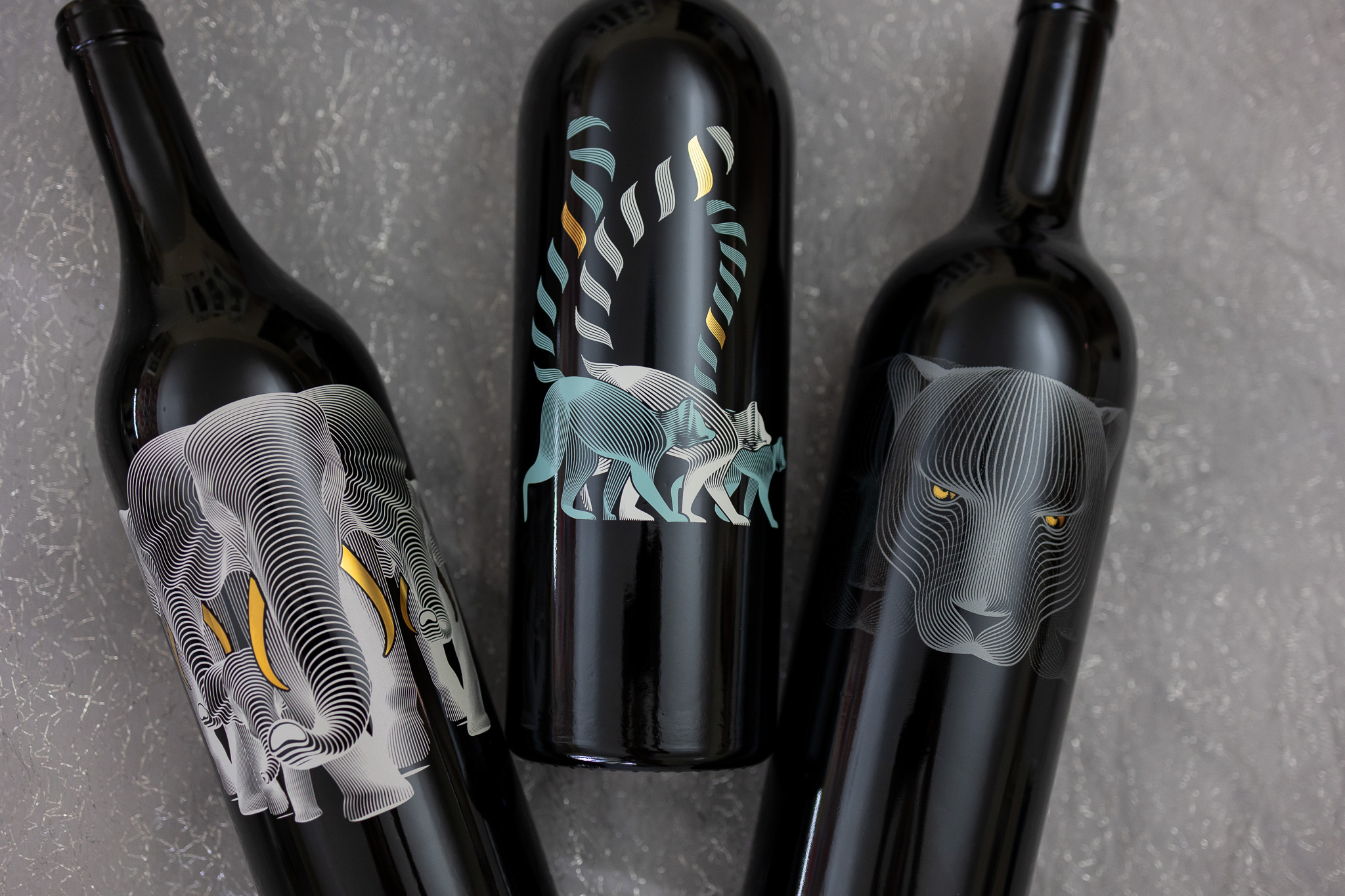 Our team had the privilege of both screen printing and etching these intricate designs for Menagerie Cellars, capturing the delicate details that embody the beauty of each animal.