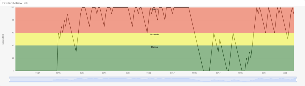 The Avterra data portal tracks mildew risk over time. Risk was high most of the season.