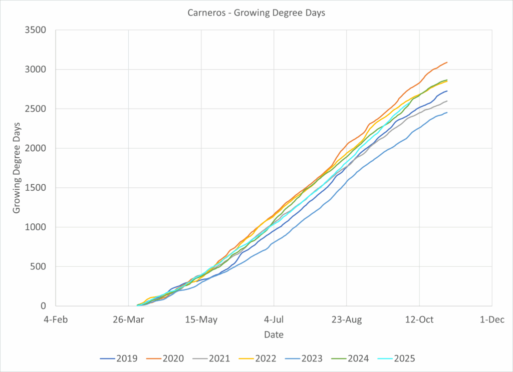 2025 in Carneros was right in the middle of the last 7 years.