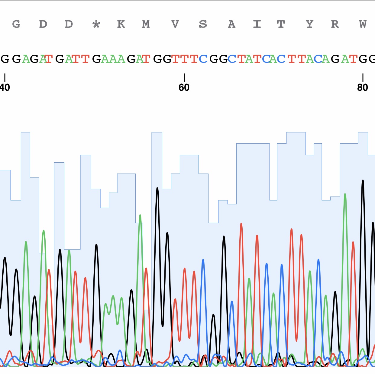 An example of a DNA sequencing chromatogram (partial).