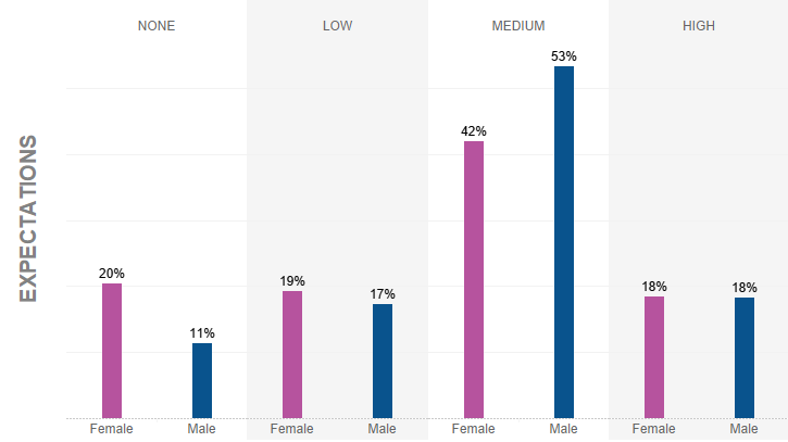 FEMALE CONSUMERS HAVE LOWER EXPECTATIONS OF WINE PRODUCTS – Female millennials are almost twice as likely to refrain from setting expectations on a wine, than male drinkers. They also have lower expectations overall, of a wine.