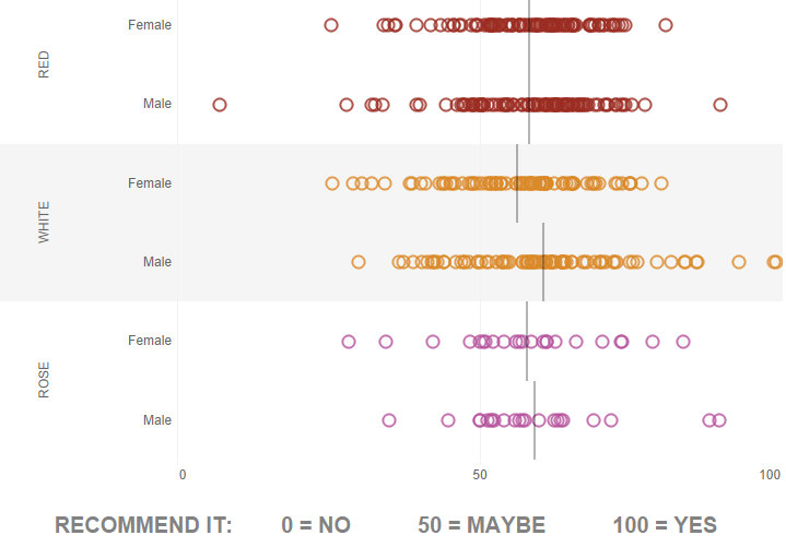 The report, delivered as an interactive analytics experience rather than the traditional verbiage plus chart images format, allows for filtering data in a number of ways including by blind or non blind tasting, geographic region, gender, drinker wine experience, varietal, wine type, winery or product.