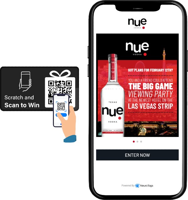 It starts by capturing consumer attention – on the bottle - through a loyalty program or contest that is brand specific. Consumers simply scratch the NeuroTags and scan with their smartphone to enter and see a custom branded mobile experience. No app is needed. NeuroTags partners with client marketing teams on the strategy and design of these consumer engagement programs, as well as provides the built-in marketing tools to build an ongoing and financially beneficial relationship with consumers.