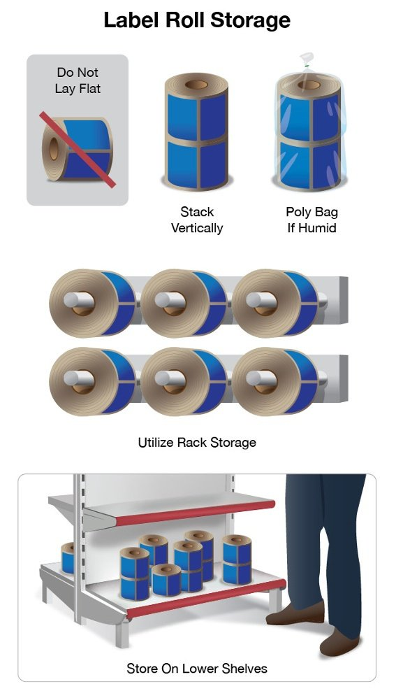 If you know the specific environment in which your labels will be exposed, let your label printer know. Some adhesives, label facestocks and label protection options can be included in the engineering of your label order to better prepare your labels for their environment. When storing labels, do not lay them flat and keep them as cool as possible.