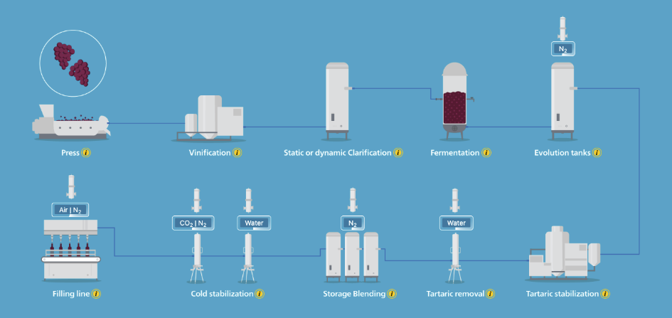 Our process map illustrates each stage of wine production, highlighting where advanced filtration systems are utilized to achieve the highest standards of purity and consistency. Explore the process to see how our cutting-edge filtration solutions contribute to the creation of exceptional wines.
