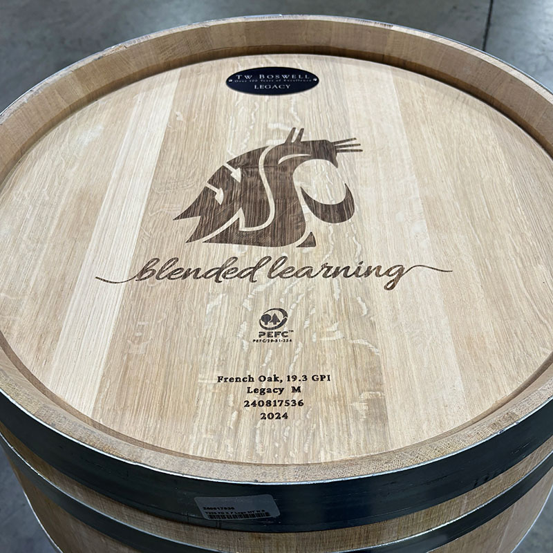 Barrels not earmarked for research are used in the WSU Blended Learning winemaking course. This course pairs students with Washington state grape growers and winemakers to make unique wines. In 2024, they will use a 400-liter Tonnellerie Tremeaux barrel on Syrah with stem inclusion in conjunction with Bookwalter Winery.