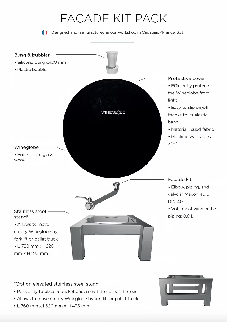 Conceptualized in 2016 and fully launched in 2019, the 220L Wineglobe is found in many important sparkling, white and red cellars around the world. Created by Bordeaux based Famille Paetzold, in 2025 Wineglobe released the newest edition to their lineup: The 400L Wine Globe.