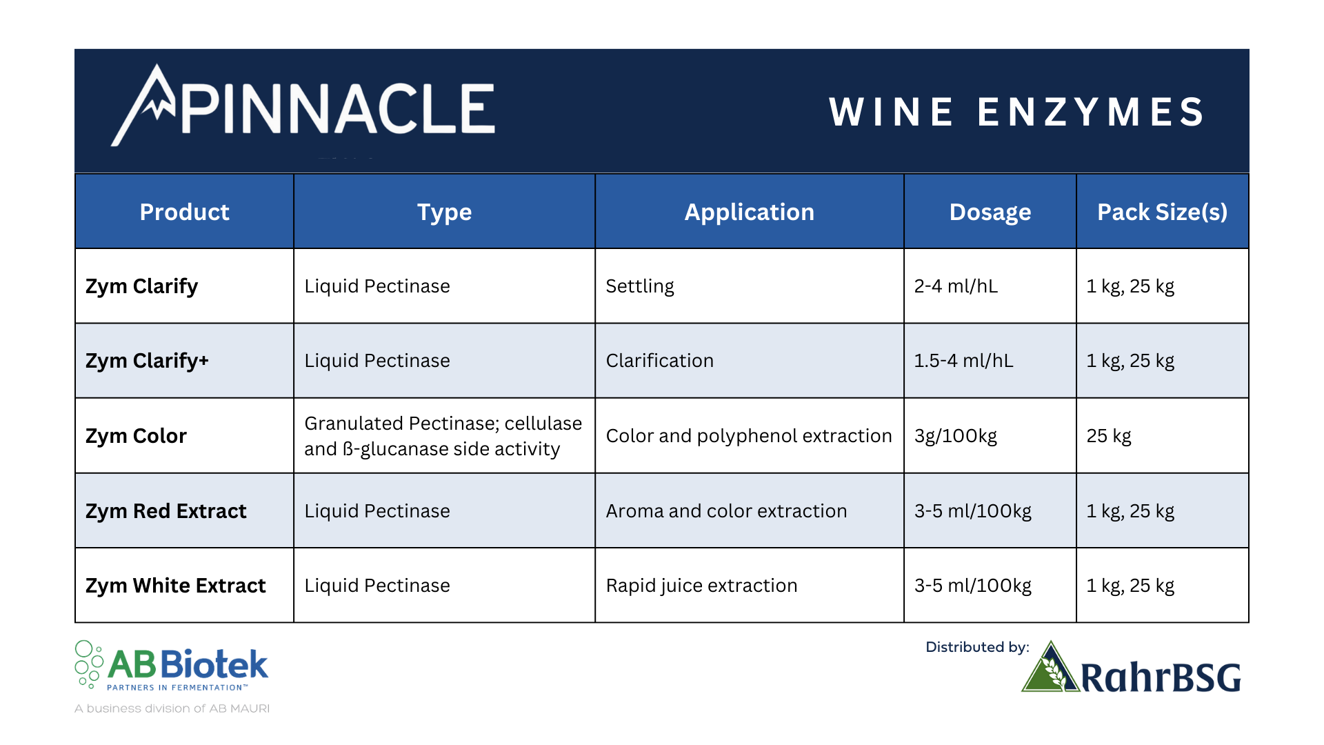 In addition to the industry-leading Pinnacle Wine Yeast carried exclusively in the US by RahrBSG, the new line extension of Pinnacle winemaking products features: