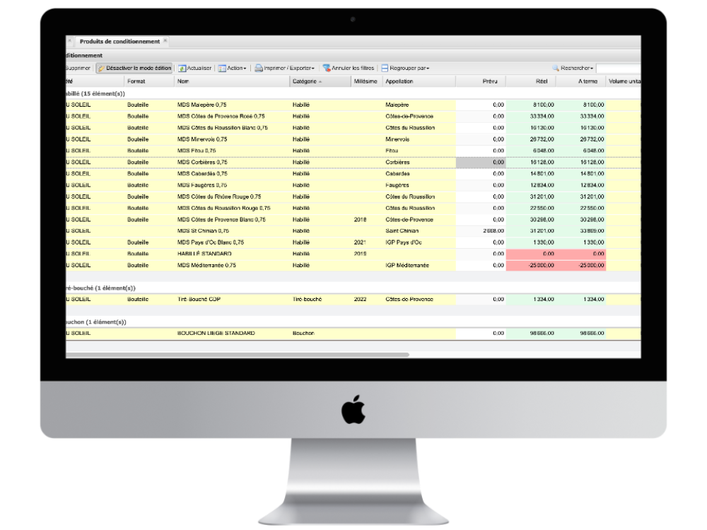 Project your future stocks of dry materials and packaged products for early management of your purchasing and marketing processes.