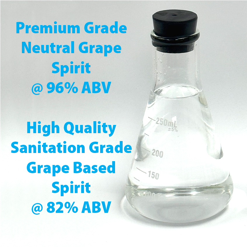 Pick from either our Premium Neutral Grape Spirit at 96% ABV or our High Quality Sanitation Grade 82% ABV Grape Spirit.