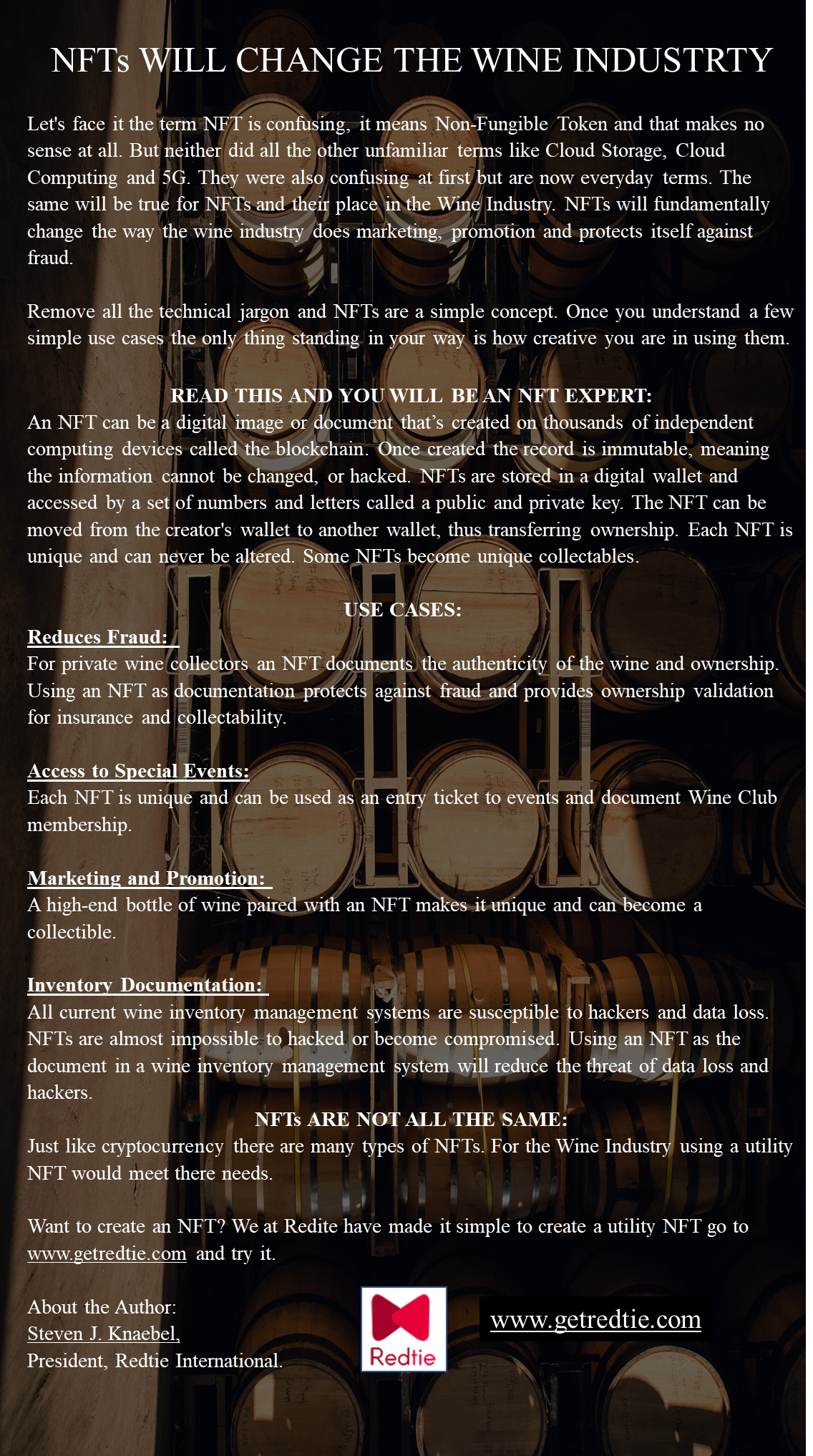 Let's face it the term NFT is confusing, it means Non-Fungible Token and that makes no sense at all. But neither did all the other unfamiliar terms like Cloud Storage, Cloud Computing and 5G. They were also confusing at first but are now everyday terms. The same will be true for NFTs and their place in the Wine Industry. NFTs will fundamentally change the way the wine industry does marketing, promotion and protects itself against fraud.