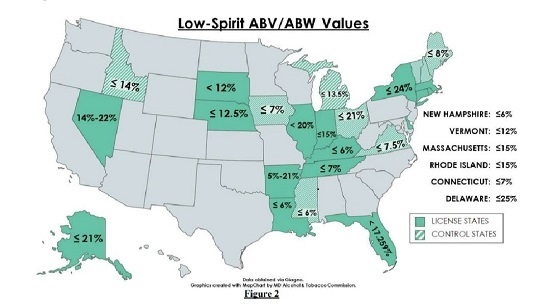 At least 12 states attempted to establish lower tax rates for “low-proof” spirit-based RTD beverages in 2021 and 2022: Alabama, Arizona, Hawaii, Kentucky, Maryland, Michigan, Minnesota, Nebraska, North Carolina, Vermont, Washington, and West Virginia. Only three states enacted the new laws: