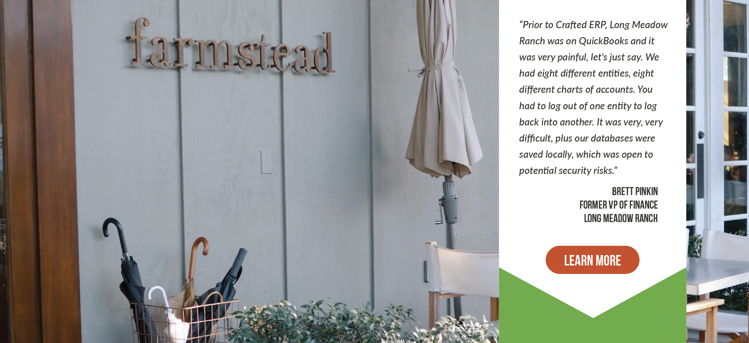 Crafted customer Long Meadow Ranch recognized these benefits quickly after implementation. Prior to using an ERP, the accounting team used QuickBooks to manage eight different entities within the company. The constant logging in and out of the system and switching between charts of accounts was cumbersome and time-consuming.