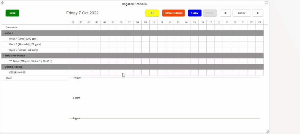 - Allowing growers to remotely schedule fertigations across any irrigation cycle without being physically present at the pump or valve.