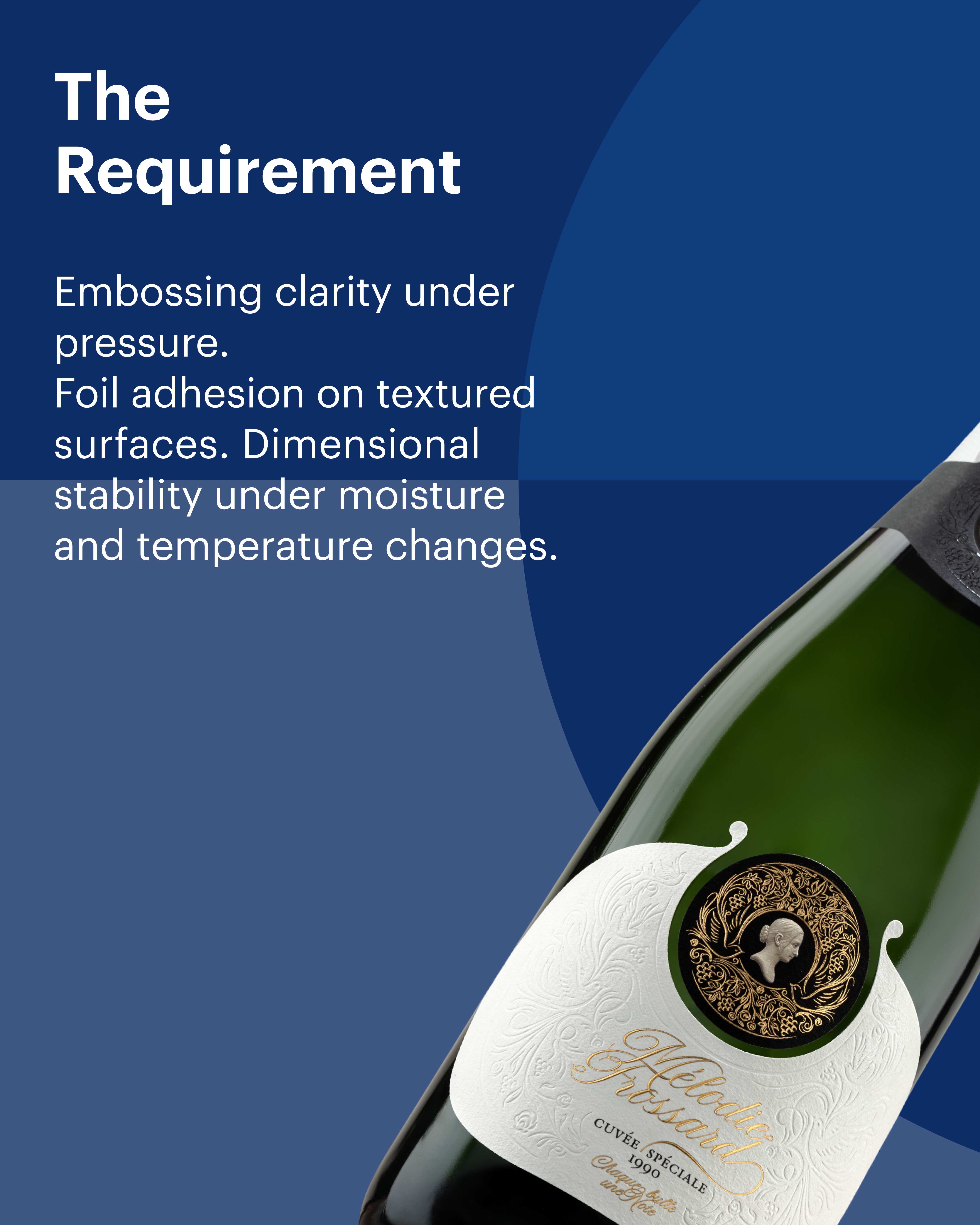 For the Mélodie Frossard Champagne label, material performance protected both precision in production and visual integrity in use.