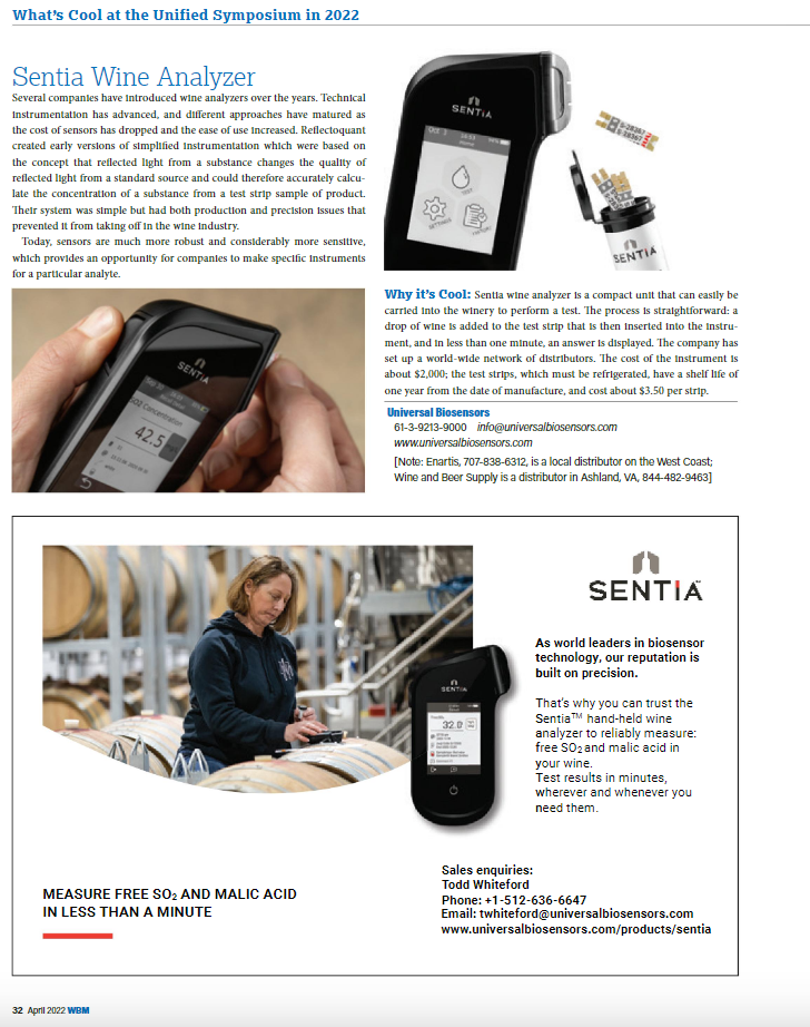 “Sentia is easy to use and provides quick, accurate results. But what’s exciting is the potential for future testing. For all the tests this unit will do makes it a smart, affordable choice for any size winery. Takes up very little space in the lab and handheld for portable testing in the cellar.”