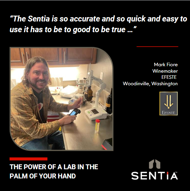 “The Sentia is so accurate, quick and easy to use. It has to be too good to be true. I’ve been using the AO method to measure sulfur in wine every month for the past 12 years, I’m excited to have this amazing new addition to the laboratory here at EFESTE!”