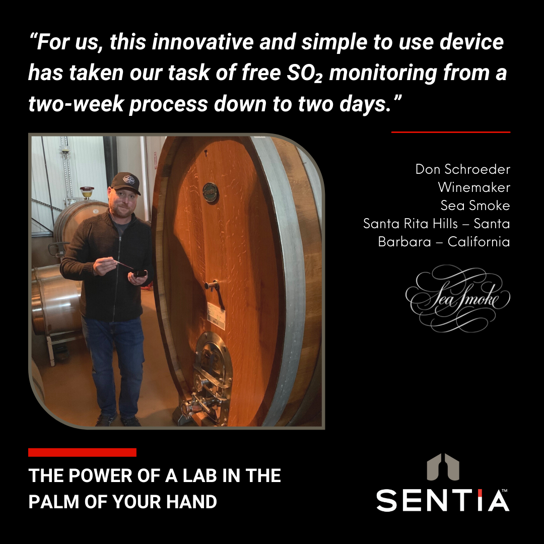 Now we can count another reputable winemaker as one of our friends. Meet Don Schroeder from Sea Smoke Vineyard - our Winemaker of the Month of June with his shared experience about Sentia wine analyzer: “For us, this innovative and simple to use device has taken our task of free SOâ‚‚ monitoring from a two-week process down to two days.”