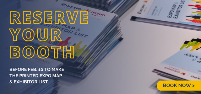 The doors to Vinexpo America | Drinks America will open in just over one month. The time is now to book your booth! Confirm with us BEFORE February 10 to be included in the printed expo map, handed to every attendee!