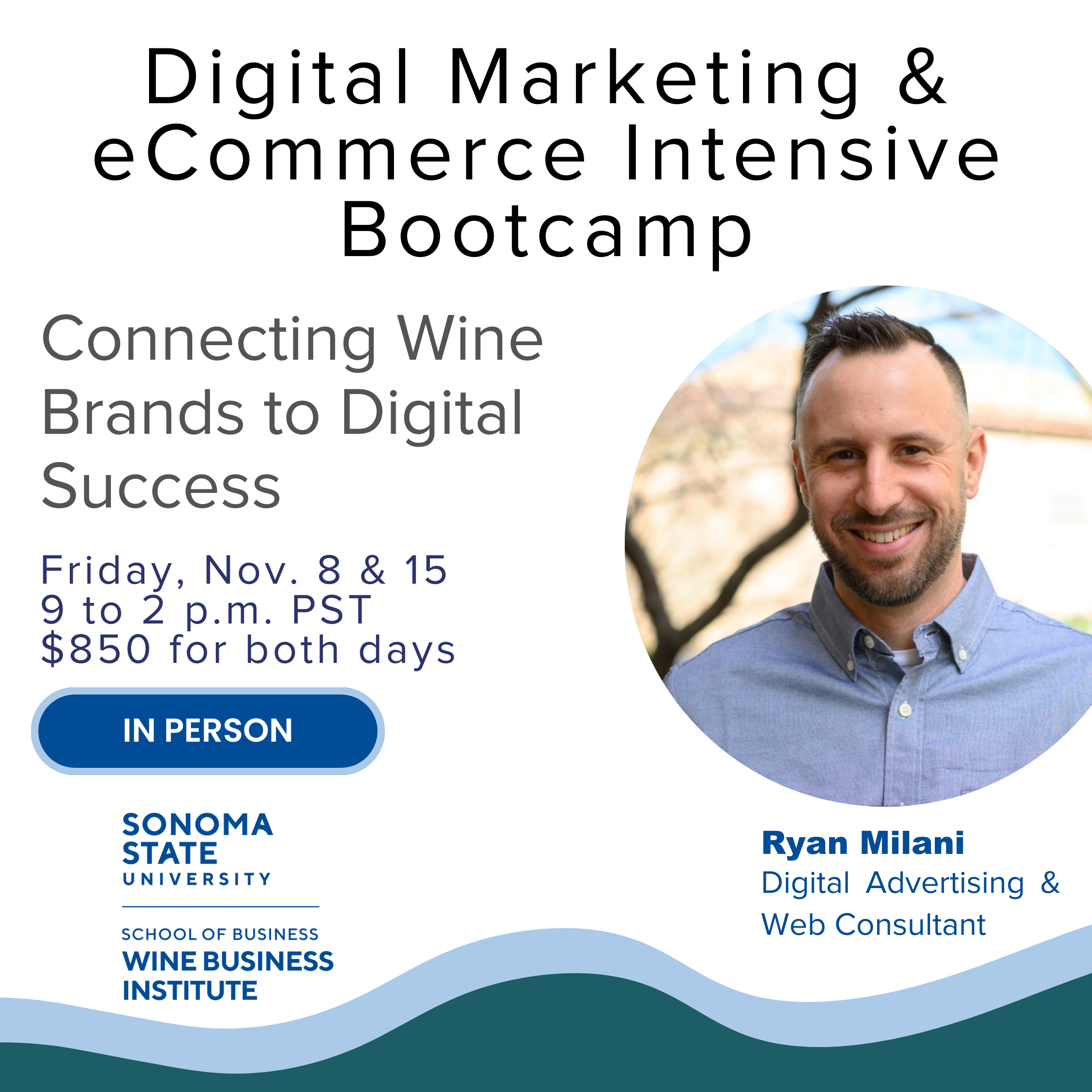 Previously taught in wine hubs like Paso Robles and New York’s Finger Lakes, this bootcamp offers hands-on training in the latest digital marketing strategies tailored for wine professionals on campus at the Wine Spectator Learning Center at Sonoma State, by the Wine Business Institute.