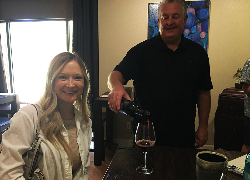 Capo Creek Winery co-owner Bob Covert pouring wine for visiting guests.Tasting the Future