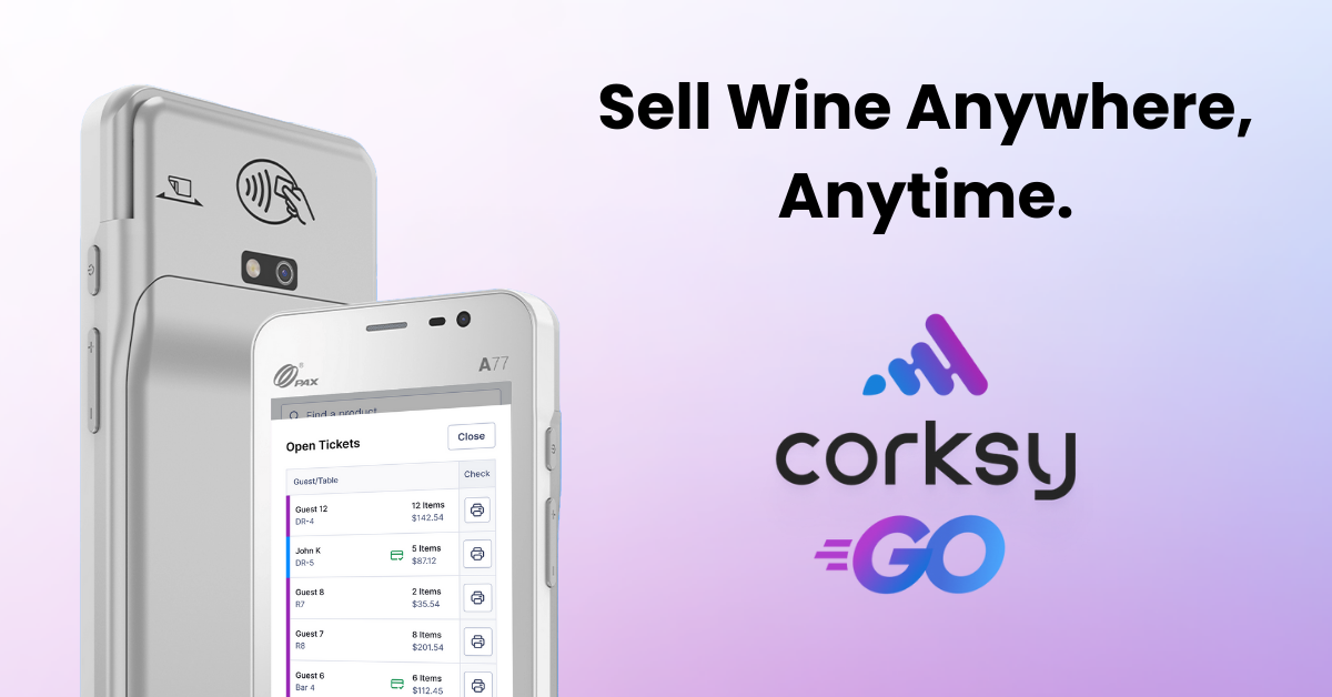 Corksy POS Corksy Go Mobile Tasting Room In-Person Sales DTC Sell More Wine CRM Wine Club