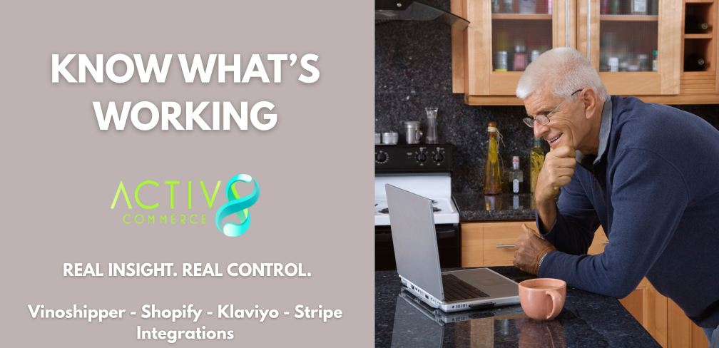 Activ8commerce wine-club sales-system winery-POS marketing DTC allocation ecommerce dashboard report Quickbooks Tock Shipping Reservations Table-seating Restaurant Klaviyo Shopify Stripe Vinoshipper