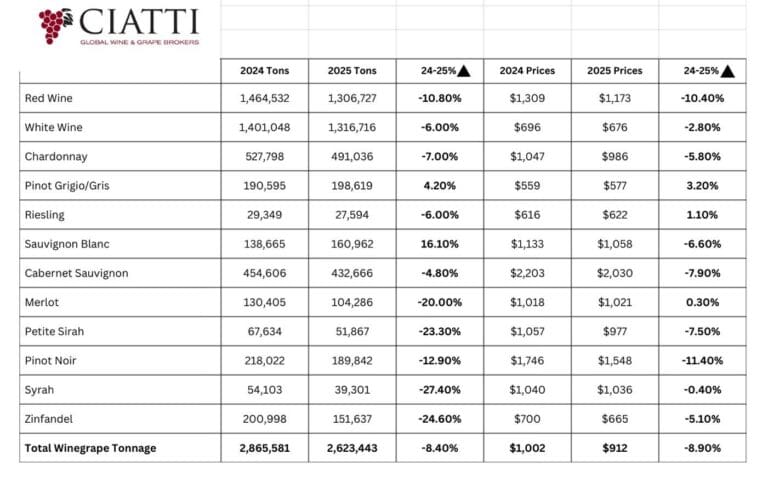 WHAT: The California Department of Food and Agriculture’s Preliminary Grape Crush Report for 2025 is a barometer for the wine and grape industry, containing prices and tons of wine grapes crushe