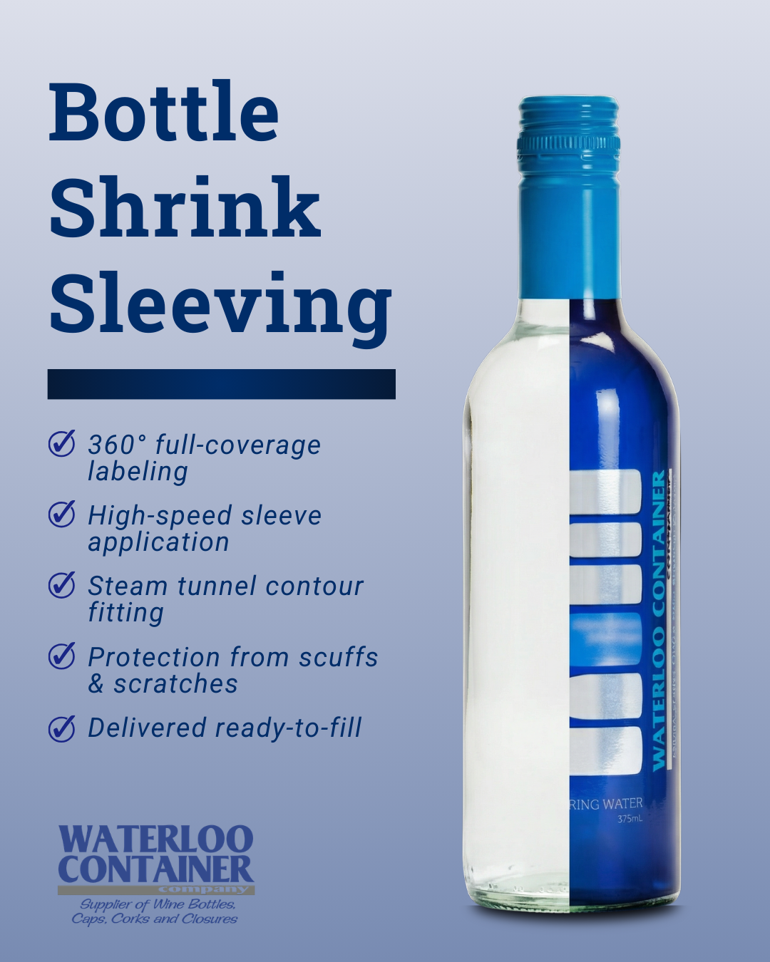 Shrink sleeves can add a clean, professional finish to a packaged product while helping keep labeling consistent across a run. At Waterloo Container, we offer bottle shrink sleeving as part of ou